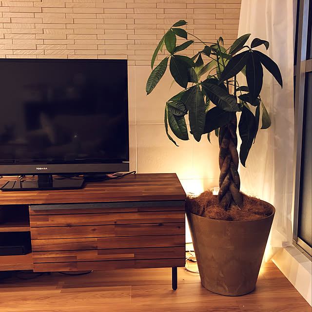 イベントに参加します。 ブラウンのTVボードとローテーブルです。 落ち着いた雰囲気で和みます。 緑の観葉植物とも相性ばっちり!