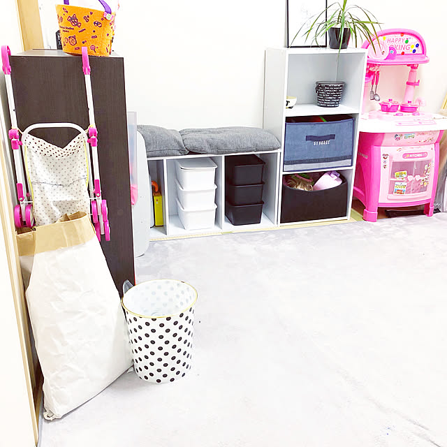 モニター応募用です。 リビング横の和室をキッズスペースにしています。まだカラフルな感じですが、少しずつモノトーンに近付けていきたいです。 山善さんのペール缶収納スツールにおもちゃを入れて、子供たちが椅子として使ったりもできたらいいなぁと思いました(^ ^)よろしくお願いします。