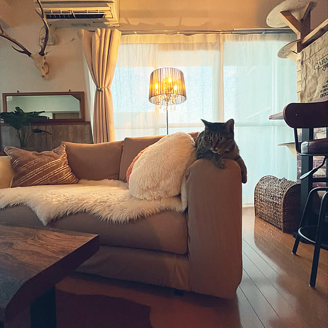 ソファカバーはクイーンサイズベット用のワッフル生地カバーを流用してます。息子が住んでた頃クィーンサイズのベットを譲った時にこのカバーを買いましたが「肌触りがザラザラしてて嫌だ!」とぬかして(アトピーさんは取り扱いが難しい😰)1回しか使えずソファカバーとして使うことになりました。