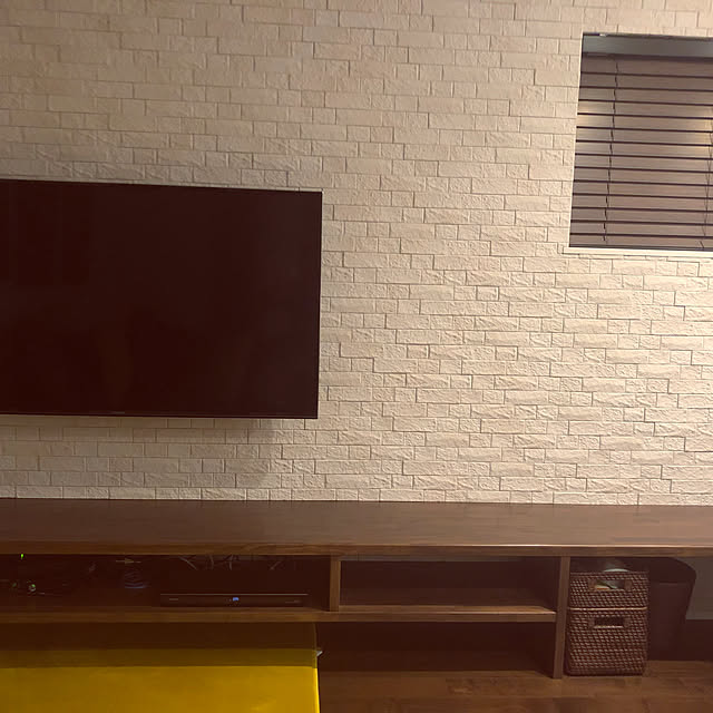 我が家のテレビボードはロウヤで購入したものです。 テレビを壁掛けにするので、一枚天板を探してました。サイズ240cmでシンプルな物がみつかり即決でした😊