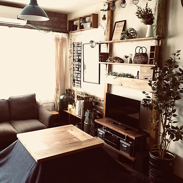 うちは黒とか濃い茶系のインテリアが多いので、ホワイト&ゴールド系が合うのかどうかと思いましたが、逆に新鮮な感じになりました。コードは1mありますが、この下にはダイニングテーブルを置くので引っ掛かることも無く、誰も文句はないはず⁈