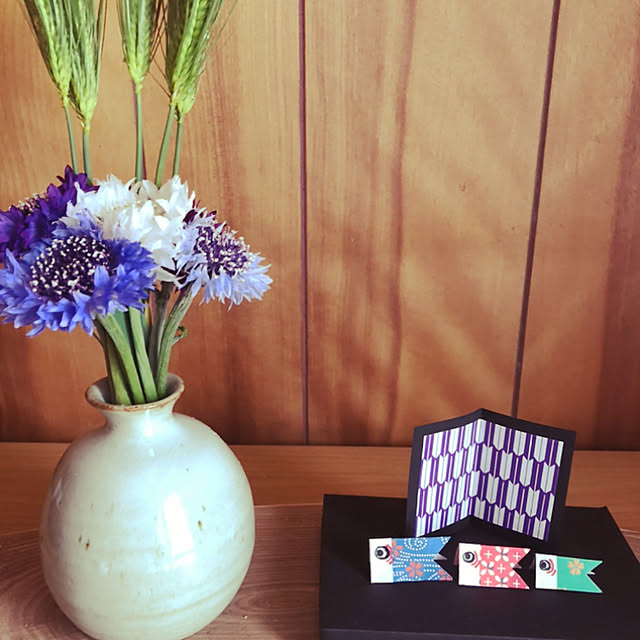 先ほどの千代紙、しまいっぱなしでは勿体ないので、好きな柄をチョイスして飾ってます♫