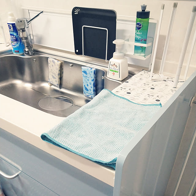 手前にはペットボトルや空き缶を乾かす用のtowerポリ袋エコホルダー(背の高い方)、奥には生ゴミ捨てる用のtowerエコホルダー(背の低い方)があります。