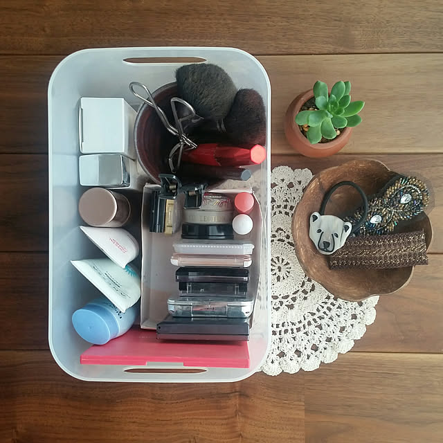 ズボラなので、いつもリビングにメイク道具の入ったポーチと折りたたみミラーを持ってきてメイクしていましたが、このメイクボックスを使い出してからメイク道をアレがないコレがないと探す事もなくなり、持ち手もついているので片付けもサッと楽に出来るようになりました!
