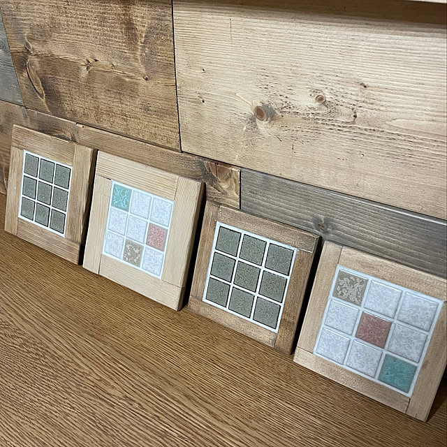 今まで何かしらDIYしては余ってたタイル使ってコースター作ってみました❤️ 周りの木材も余りの端材達です😁✨✨