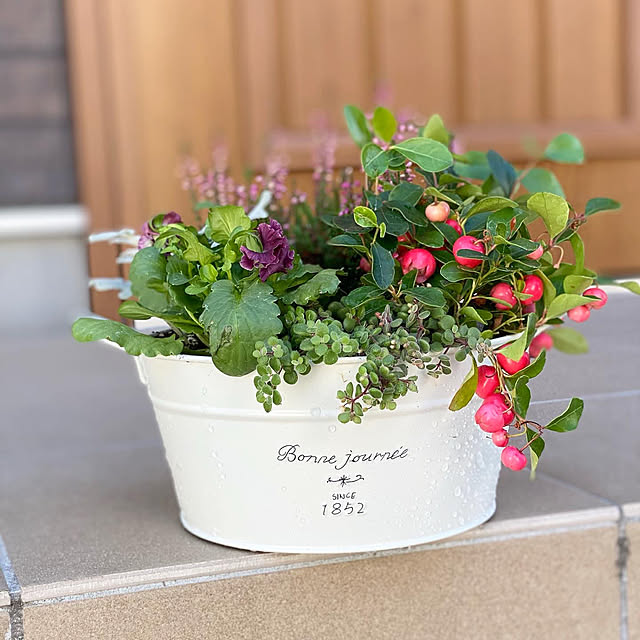 下駄箱の上に園芸店で一目惚れした寄せ植えを置きました🌼*・