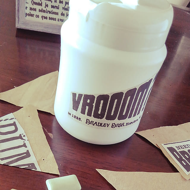 セリアのハロウィン新聞をチョキチョキ✂️珈琲染めはしてないけど、ガムボトルにペタリ😗 困った時の英字新聞✨