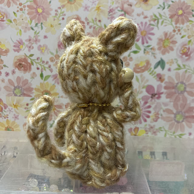 青い花柄のストールがガーリーな、アヒルの親子を編みました🐥