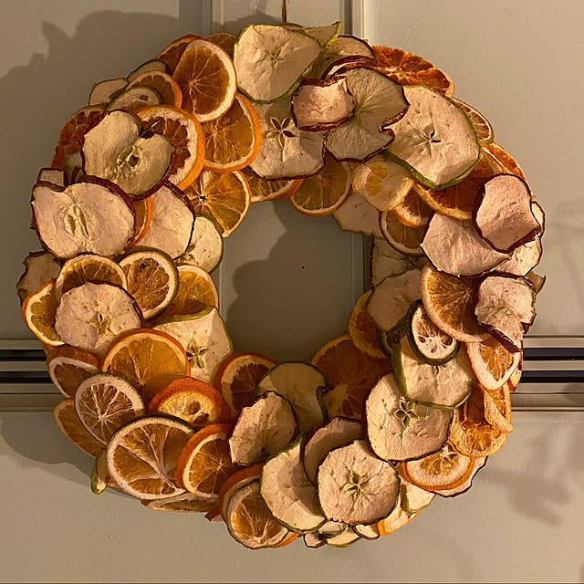 ゴミ処理機loofen(ルーフェン)でドライフルーツが出来ると気がついてスダチとミカンをドライ化して(半日ほどで完成)布ツリーにはミカンのドライを卓上ツリーにはスダチのドライを飾ってみました(4枚目picはloofenにミカンを入れた所)