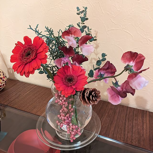 私がこうやって赤いスイトピーの花で幸せ♡気分になれるのも沢山の人が色んなカタチで関わってくれてるお陰なんですね♡