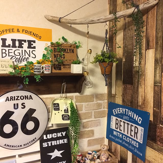 そこで、流木が余っていたので、壁にかけてみました💦