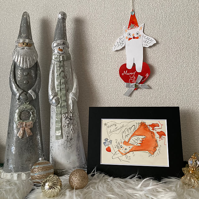 オシャレなお友達から素敵なプレゼントが届きました。 包を開けてみるとワーって❣️ 可愛いニャンコサンタさん とっても嬉しかったです 前からいるサンタさんとスノーマンと一緒に飾らせていただきました