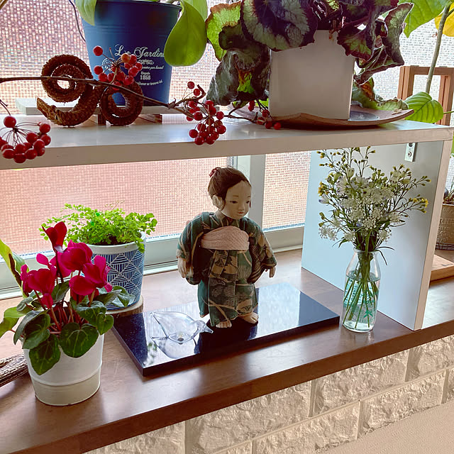 少し前ですが、キッチンのシェルフに豆雛を飾りました( ˊᵕˋ* )