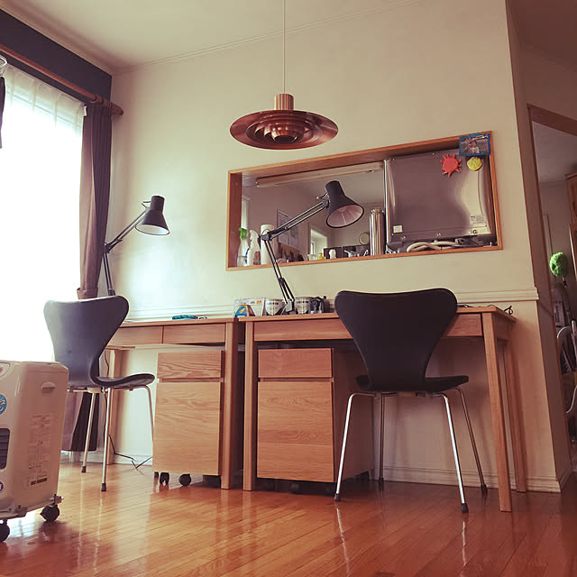 自分達で引き戸を取り付ける案もありましたが、カーテンにする事で、真ん中の壁には好きな絵やファブリックパネルを飾る事が出来ました♡