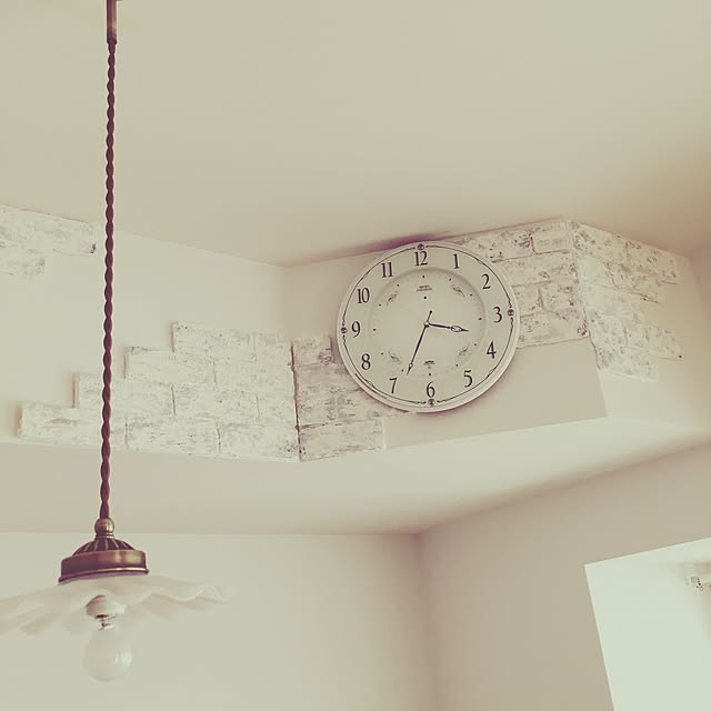 ガラスのミルクシェードの奥に見えるステンドグラス 軽く目隠しでカウンターにつけました どっち側から見ても可愛い♡♡