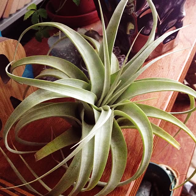 リビングのキセログラフィカ。 いつもは外組だけどちょっと休憩のためウンベラータの鉢に居候。しかしおっきくなったな