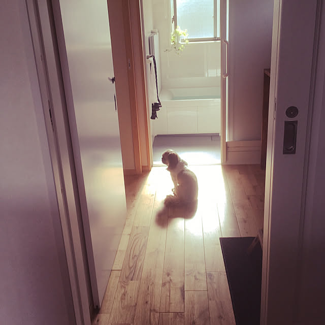 お気に入りのメープルの床の廊下 和室から洗面に繋がるこのまっすぐな動線が、心地よい風を家中に運んでくれる、密かなお気に入り❤️