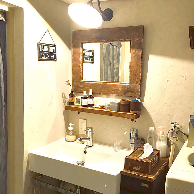 建売の三面鏡をはずしてDIYした洗面所のミラーは楽天で購入したものです♡ 軽くて取り付けも簡単でした!