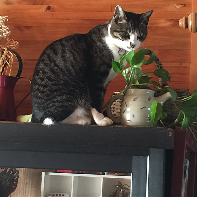 飛騨高山の古い水屋箪笥とアンティーク風な現代モノの棚の組み合わせですが、満足しています😆