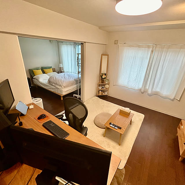 広くてとにかく作業しやすいし、木目がしっかりある感じの天板とちょっと変わった脚の形がおしゃれやな〜🥺と思って気に入ってます。笑