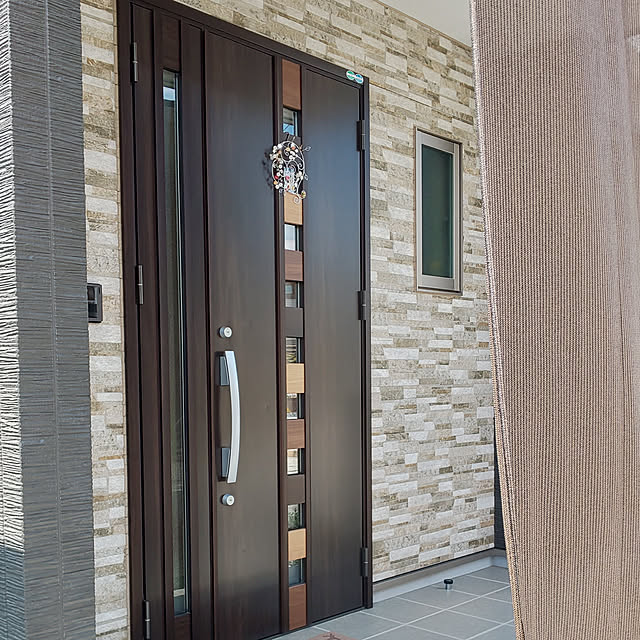 外に付けるキーパッドは東向きの玄関で陽が当たるのでバッテリーや接着の心配から、ドアではなく外壁のインターホンの隣に付けました。