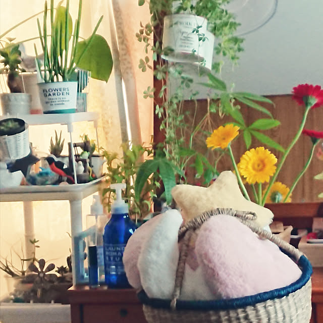 使い道がなかなか決まらなかったかごにDAISOのもふもふさん達を集めてみました。 次の冬までさようなら⁉️ niko andの青い詰め替えボトルは お店でみるより大きく見えるような⁉️😅 使いやすかったらシャンプー用も購入予定です(^-^)