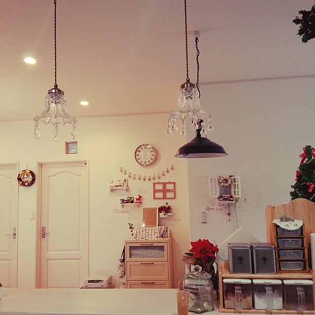 カフェカーテンと中央のマットを赤色のチェック柄にして、少しカントリーな雰囲気も楽しんでいます❤️🤍