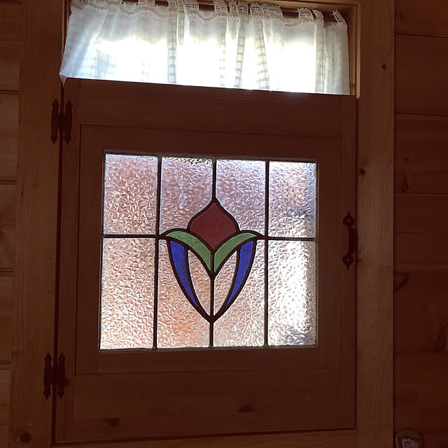 ずっと前にキッチンカウンターにつけていたステンドグラス。 次は小屋の窓となり、現在小屋は改装中。 古いイギリスアンティークだったので 枠はぼろぼろになったので 主人が作り替えてくれたのを小屋から外してここへ持ってきました。取り敢えず仮付け。枠はこのままでも良いかなぁと思っているけど未塗装部分があるので 何色かに塗らないといけないな~☺️