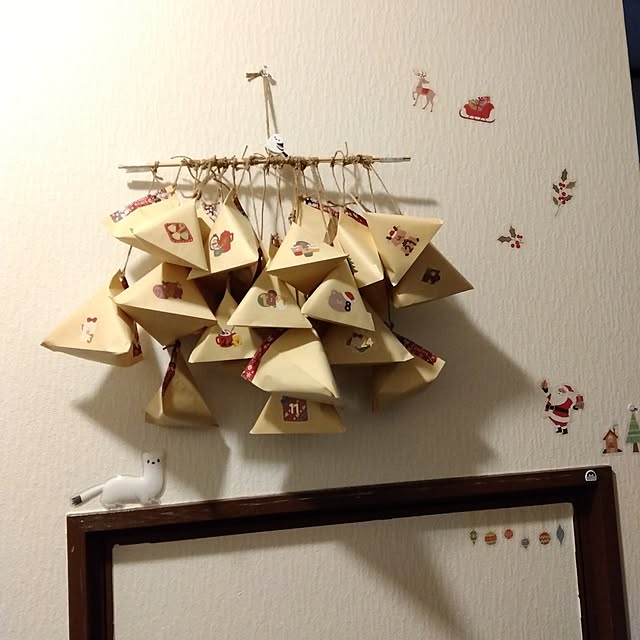 持ち手は、使用済みの紙袋から取って貼り付けます
