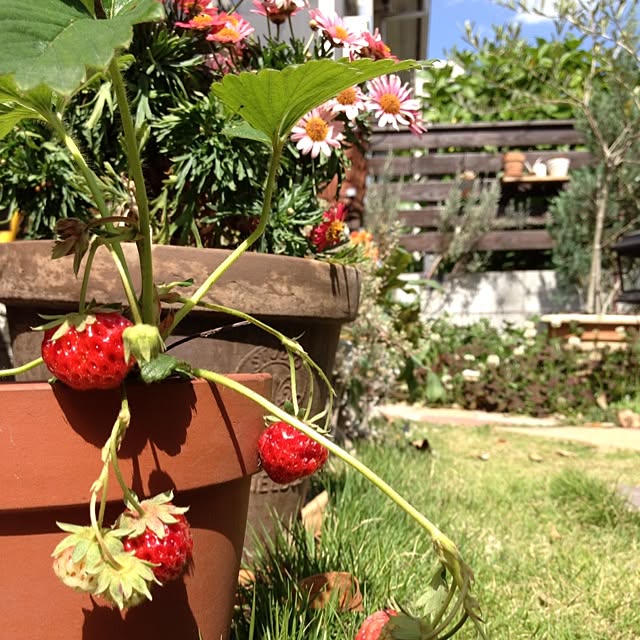 先月末に買ったワイルドストロベリー、白実と赤実。白実だけ買った時から実がついていて、どんな風に大きくなるのかなぁと楽しみにしてました♡