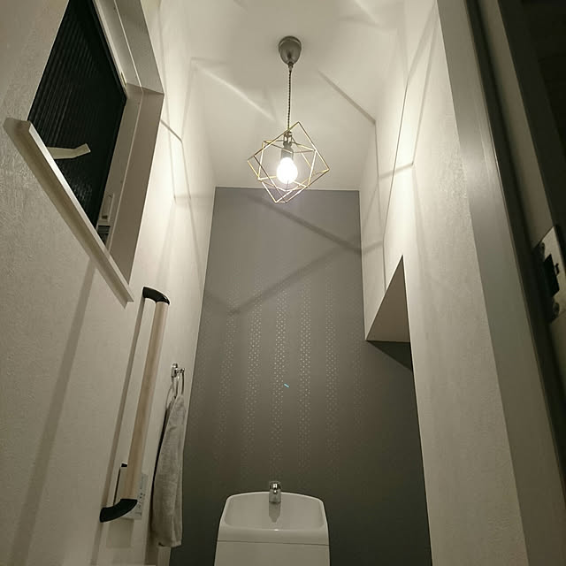 夜中のトイレ 薄っすらドットの壁紙がお気に入りです☆ 悩みに悩んだペンダントライトも大満足(*'∪'*)