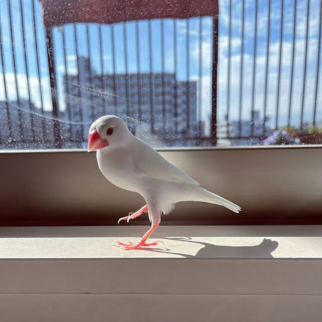おはようございます❣️ まだケージの上は出来てないけど💦とりあえずケージいれてみました😁 サイズはピッタリ〜😍👍 今は写ってないけど、窓側にトイレを置いてるので🚽万が一飛び散っても拭けるように😅ダイソーのレンガシート貼って、前にマナベで買ってたモールディング?付けてみました😁 可愛い🥰笑