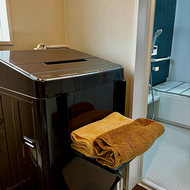 白い洗面所はもちろんのこと、ブラックなキッチンにも映える素敵な色です♡