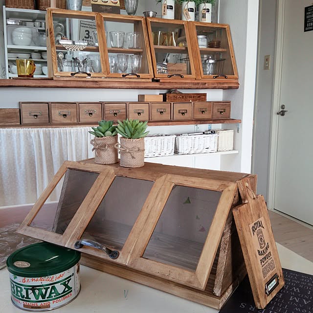桜材の耳付き板をホームセンターで見つけて取っ手の部分のみカット。 耳はあえてそのまま残して自然な感じに。パン用のカッティングボードとして使用しています。