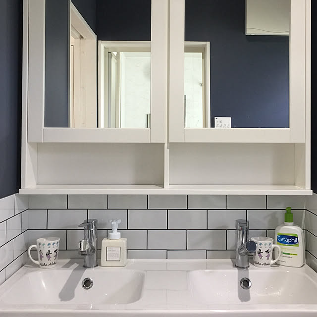 ミラーキャビネット、水栓金具、洗面ボールはIKEA製品を利用しています。