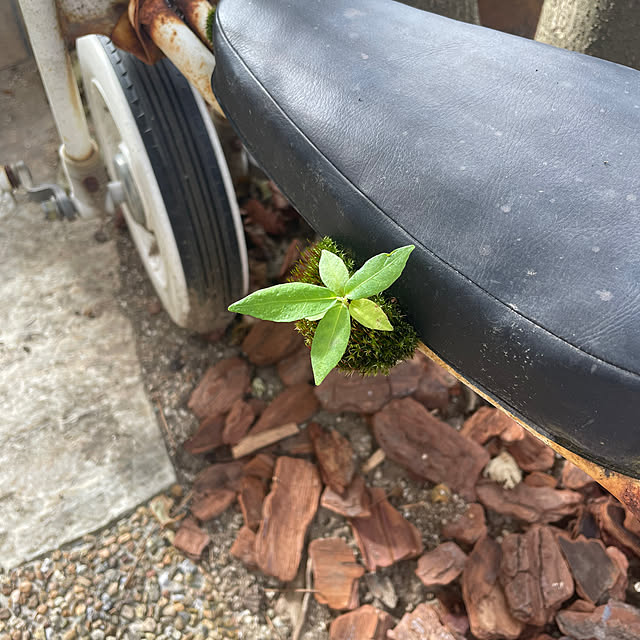 庭のオブジェ?になっているのは 息子が子どもの頃に乗っていた三輪車 いかにもプラスチックの原色だった三輪車が、20年経っていい色合いに💕 初めの頃 「なんで庭に置きっぱなしにしておくんだ〜」 と言っていた父も、何も言わなくなりました(笑)