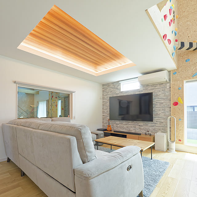 部屋の中心にあるnoyesのソファーは子供がいても安全な肘掛けなしのローソファーです(^-^) ほぼここに居ます笑
