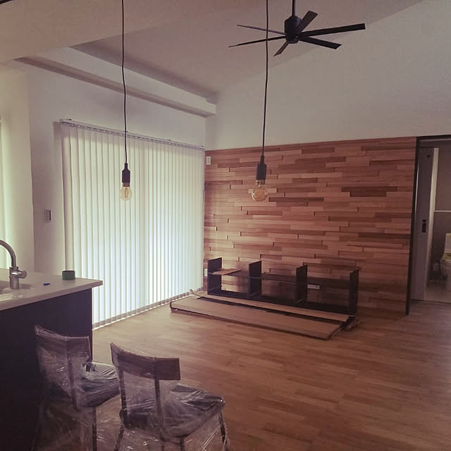 木の匂いが感じられるリビング⭐︎ 月のステンドグラスがお気に入りです