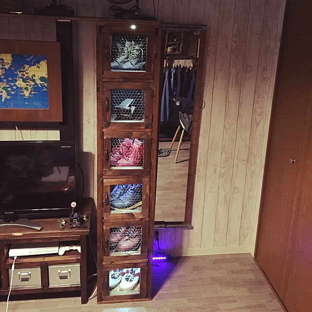 たぶん画像では遠くて見えないと思いますが、蝶番側にジーンズのセルビッジ柄を貼っています♪ ビッグジョンさんから出ていました!