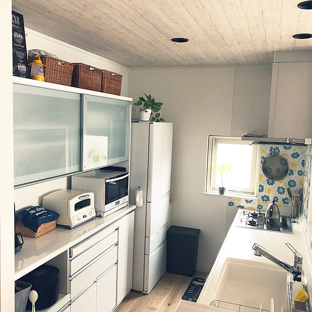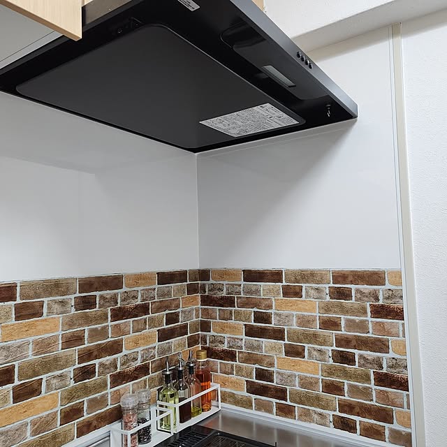 白い壁紙の時よりちょっとダークになった分、タイルシートのラベンダー色が明るく目立って良きです🤗
