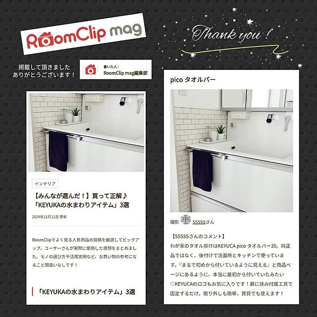 「RoomClip mag」 雰囲気がこんなに変わった♡ DIYで叶える理想のタオル掛け に掲載させて頂きました。 RC運営者様 ライターsachi様 沢山のユーザーさんの中から選んで頂き 素適な記事に、温かいお言葉、 掲載して頂きありがとうございます。 わが家のキッチンは インダストリアル風に作っていて タオル掛けを妥協する事が自分の中で 許せなかったので、お気に入りのDULTONの 無骨なフックを取り付けてみました。 ━━━━━━━━━ᵗʱᵃᵑᵏᵧₒᵤ━━━━━━━━━━━ https://roomclip.jp/mag/archives/85772?utm_campaign=app_sns_share&utm_medium=social