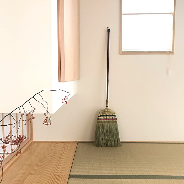 箒生活をはじめました 静かだし、隅々手の届かないところまで綺麗になるしで、手軽に毎日掃き掃除するようになりました 掃除機は週3回から1回に減らしてエコな生活邁進中 この箒なら毛足の短いリビングのカーペットも掃除できるので家全体ピカピカ~