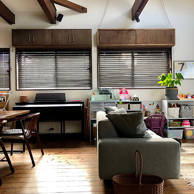 ソファを置いていましたが子供部屋へ移動。テーブルは無印良品の折り畳みテーブルを使うときだけ出して普段は階段下へ収納しています。 子どもはごろごろできて嬉しいみたいだけど、私はソファに座りたいです〜( ・᷄ὢ・᷅ )