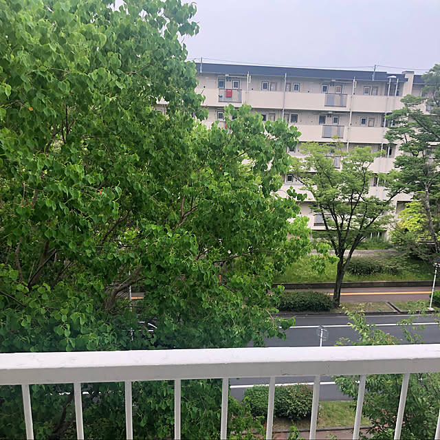 今日は雨 娘家族がUSJに行く日なのに雨だとテンション下がるなー 楽しんできて欲しいな 団地のベランダから〜