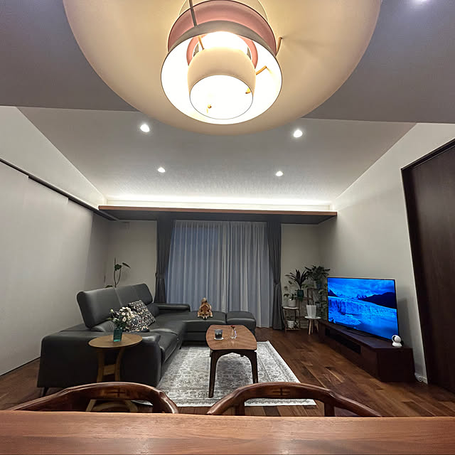 現状は間接照明部分を見上げても 照明器具は見えないようになっててカッコ良いのだけど… 私は照らした時の光の具合の方を大切にしたかったので 器具は少し見えるけど位置を変えてもらうことに。