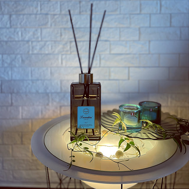 株式会社ネイチャーラボ「ルームディフューザー」ランドリンのディフューザーの大量サイズ「グランデ」モニター中です。 香りオイルはたっぷり200mlということで、リビングなど広い空間や香りを楽しみたい場所に置くことをオススメしていたので、先ずは玄関に置いてみて、香りを楽しんでみました。 香りについて♡ 箱には『ほのかな甘みと透明感のある、オーシャングリーンミックスの香り』と表記されています。 実際に私が感じた香り♡ 柑橘系の爽やかさとお花の甘さを兼ね備えた、スッキリとした甘すぎない上品な香りです。 空間に強く香りが溜まることなく、ほわっと香っています。歩いた時に風と共に香りがついてくる感じ。甘い~スッキリ~とついてくる感じです。 ユニセックスな香りで、今使っているランドリンのクラシックフローラルより、甘さはかなり控えめに感じます。 また、あまり香りに詳しくないのですが、「白檀」の香りがどこかほのかにする気がするので、落ち着きます。 ※香りの感じ方には個人差があるのでご了承くださいませ 香りを言葉で伝える事。。。めちゃ難しいですが、少しでも伝わってくれたら嬉しいです(⁎ᴗ͈ˬᴗ͈⁎) 因みに写真は、オシャレな瓶が引き立つように、日常ポールハンガーに掛けてある赤い非常用持ち出し袋は外して撮りました。 大理石調の床とのバランスが良く、大人な感じで新鮮です✨ ୨୧┈┈┈┈┈┈┈┈┈┈┈┈୨୧ 引き続きモニター報告にお付き合いくださいませ(❁ᴗ͈ˬᴗ͈))❤️ 次は、香りの成分について調べたことをお伝え出来たらと思います𓂃𓈒𓏸︎︎︎︎