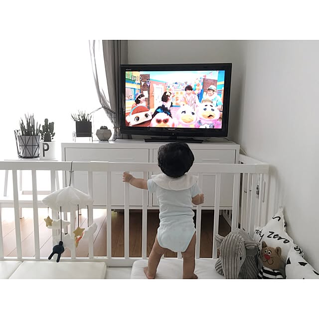 リビングテーブルに座って目の高さに設置したので快適にテレビが見れてます😊