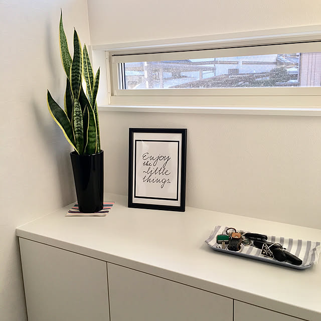 やっと玄関のディスプレイが固まってきました♡ ポスターは自分で印刷して フレームにいれただけ(^^;) 小さなことでも楽しもう って意味みたいです♡♡ 観葉植物の下にはペーパーナプキン(;^ω^) 素敵なペーパーナプキン探さなければ♬