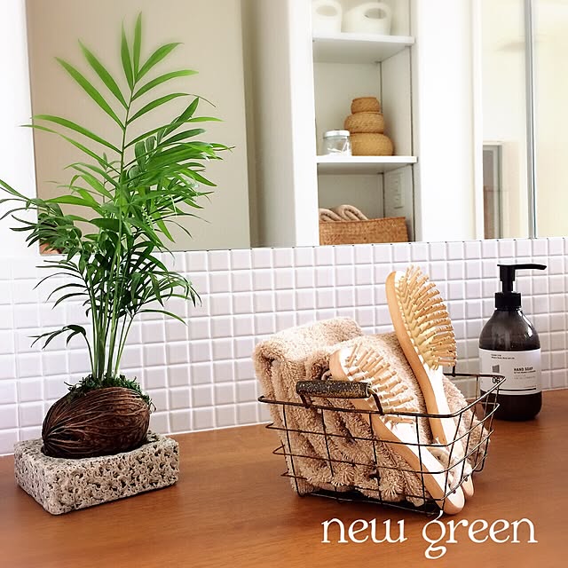 洗面スペースは選んでよかった!設備です。 洗面台はTOTOオクターブです。 排水口の掃除が楽なところや引き出しの使いやすさ、蛇口のスタイリッシュさがお気に入りです。 最近はフットペダルや自動水栓もあるらしく、使ってみたいとちょっと思います。 うちの洗面台は幅1000ですが、さらに広々使いたくてカウンターも設置しています。 減額のために造作にしませんでしたが、光沢のある天板と、下にバケツなり踏み台なりを収納できる自由度の高さが良いです。 最近ベビー踏み台が仲間入りしたのでスツールはカウンターの下から追い出されましたw 可愛いスツールなので出しっぱなしでもいいかな。 洗面所はあまり日が当たらないので、リアル植物を置くのを止めました。IKEAのフェイクグリーンも色味が可愛くていい感じです。