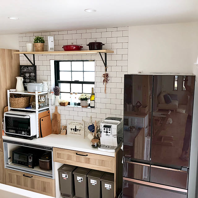 キッチン延長線上にあるダイニング側の我が家の黒窓枠はdiyをした、なんちゃって窓枠です。